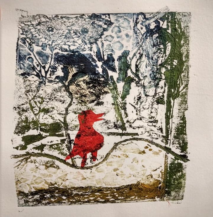Tijdens deze les gaan we kleur toevoegen aan een ets. Met deze druktechniek voeg je een dun stukje gekleurd papier toe tussen de ets en de papierdrager. Met een beetje lijm en de kracht van de drukpers vormt het uiteindelijk één geheel en een ets krijgt zo een compleet andere uitstraling.